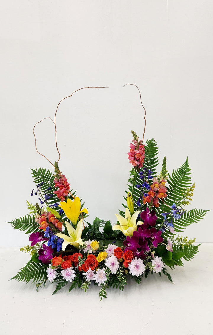 This arrangement is thoughtfully designed to express heartfelt sympathy and honor cherished memories.
