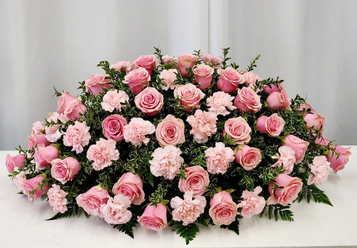 The Gentle Moment Casket Spray offers a soft, pastel-themed tribute that expresses gentle sweetness and heartfelt sympathy. Crafted with delicate blooms, this arrangement provides a serene and comforting presence, honoring your loved one with grace and warmth during difficult times.