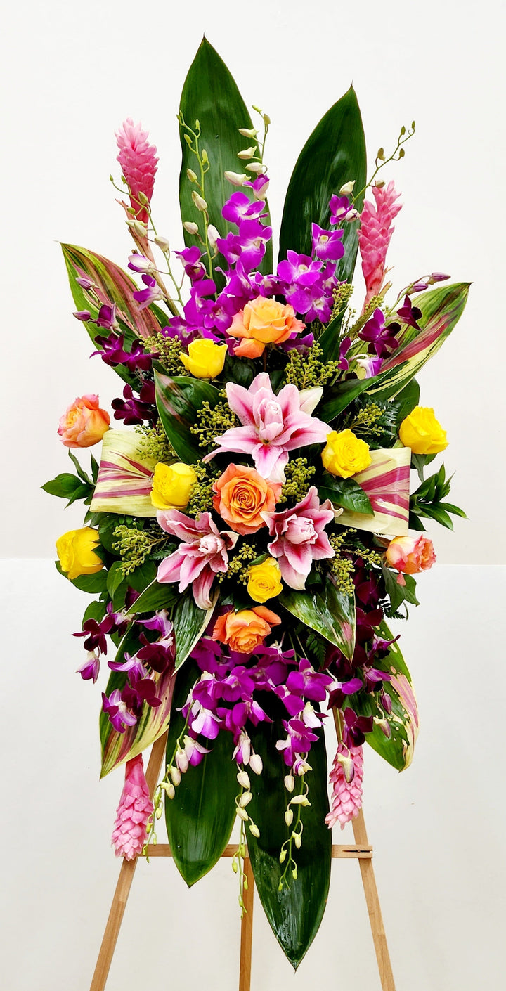 The Living Spirit Spray is a vibrant tribute, designed to celebrate the colorful life of your loved one. This unique sympathy arrangement brings a bright, heartfelt expression of remembrance and support, honoring their spirit with a beautiful, one-of-a-kind masterpiece that conveys comfort and hope during difficult times.